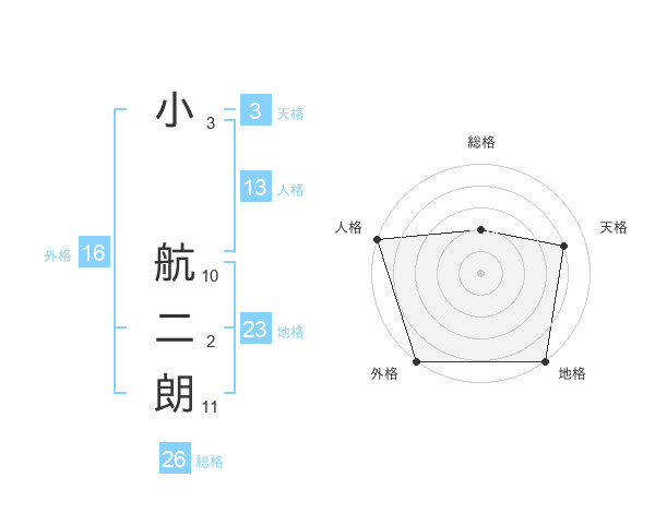 小 航二朗さんの総格は26画の2点!