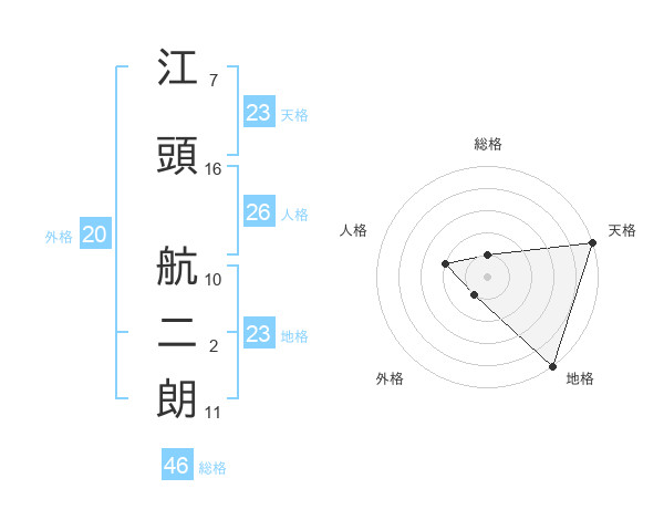 江頭 航二朗さんの総格は46画の1点!