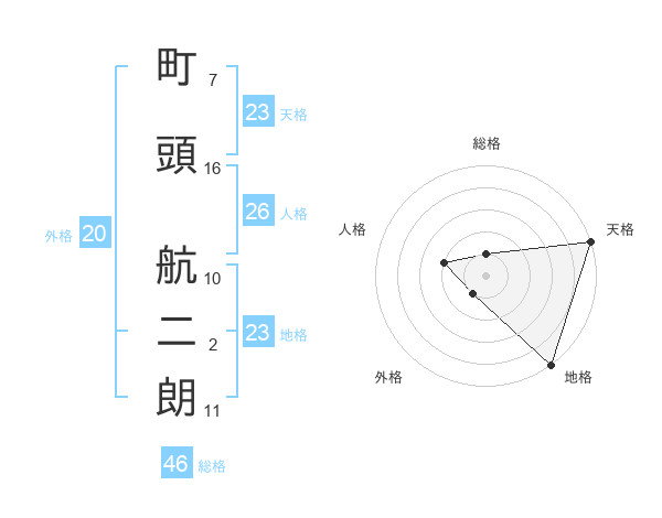 町頭 航二朗さんを姓名の画数から五運を鑑定