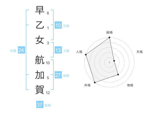 早乙女 航加賀さんの総格は37画の5点!
