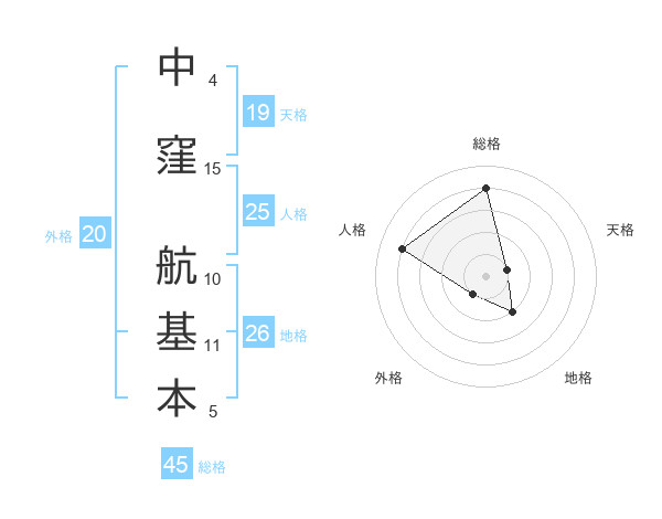 中窪 航基本さんの総格は45画の4点!