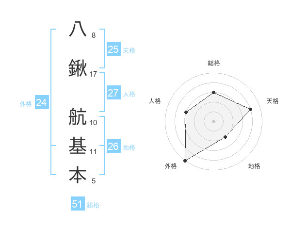 八鍬 航基本さんを姓名の画数から五運を鑑定
