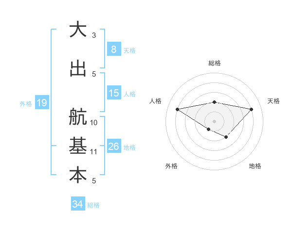 大出 航基本さんを姓名の画数から五運を鑑定