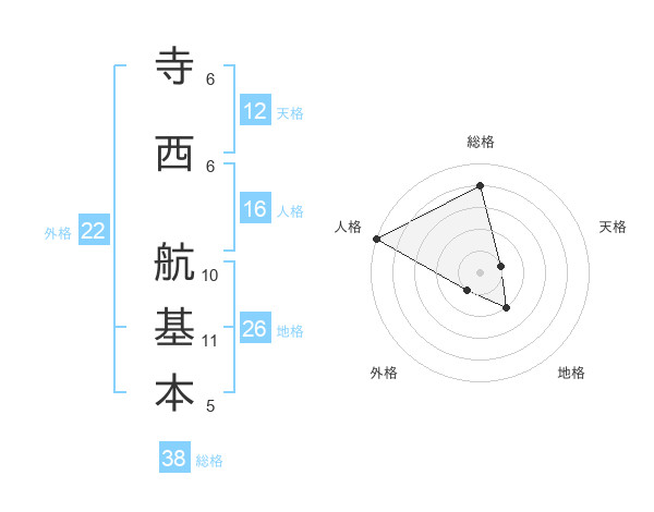 寺西 航基本さんを姓名の画数から五運を鑑定