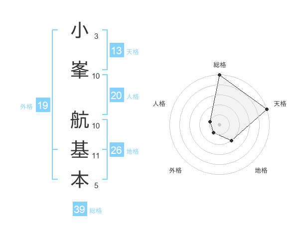 小峯 航基本さんを姓名の画数から五運を鑑定