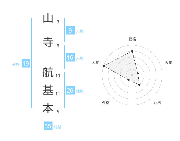 山寺 航基本さんの総格は35画の4点!