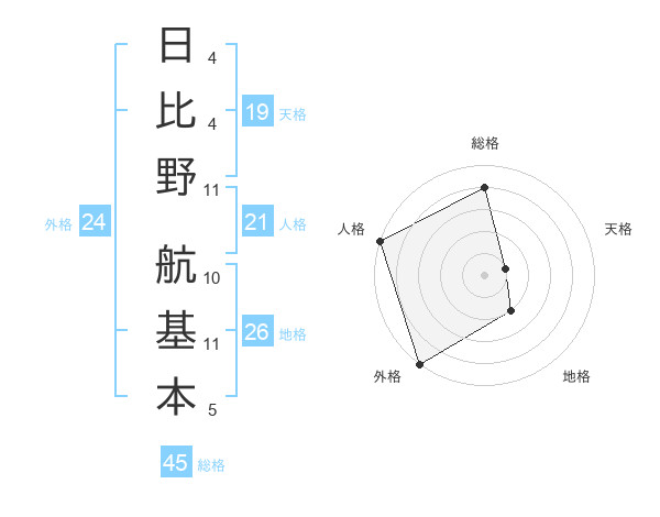 日比野 航基本さんを姓名の画数から五運を鑑定