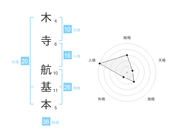 木寺 航基本さんを姓名の画数から五運を鑑定