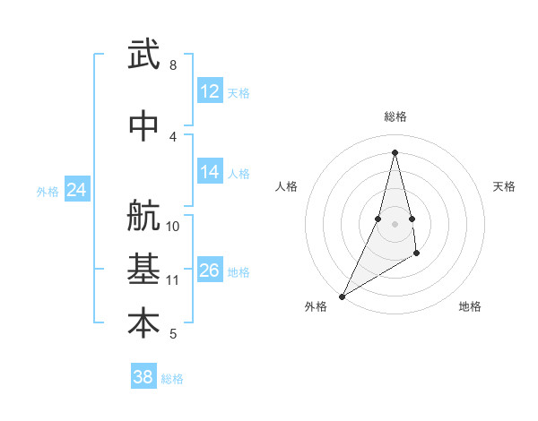 武中 航基本さんの総格は38画の4点!