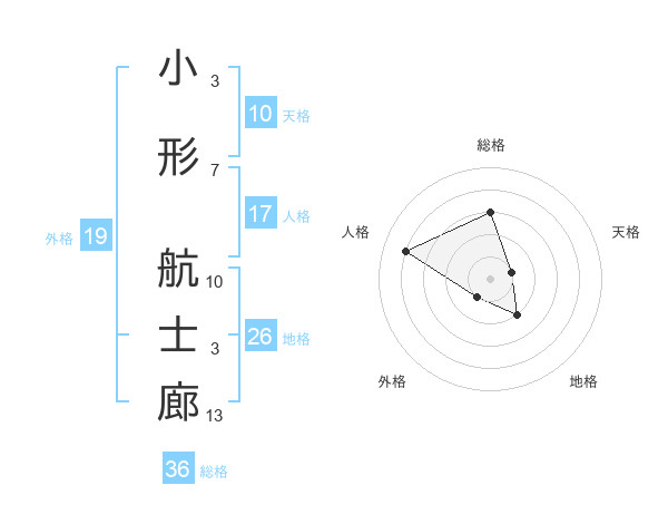 小形 航士廊さんの総格は36画の3点!