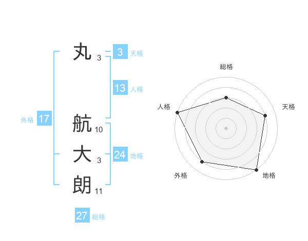 丸 航大朗さんを姓名の画数から五運を鑑定