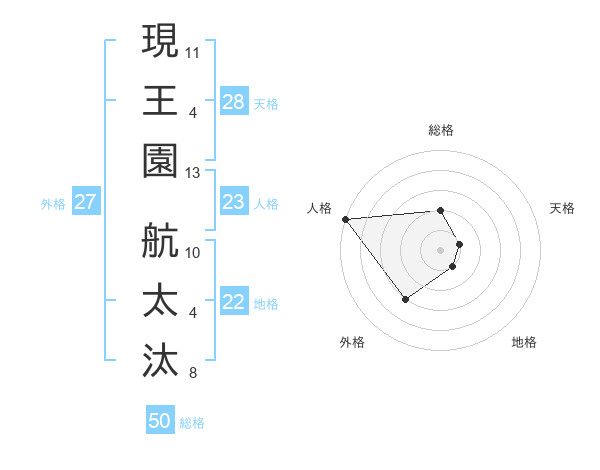 現王園 航太汰さんを姓名の画数から五運を鑑定