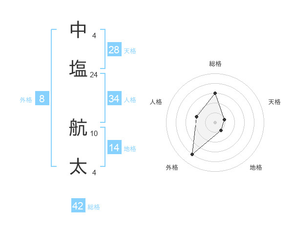 中塩 航太さんの総格は42画の3点!