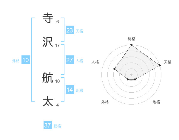 寺沢 航太さんの総格は37画の5点!