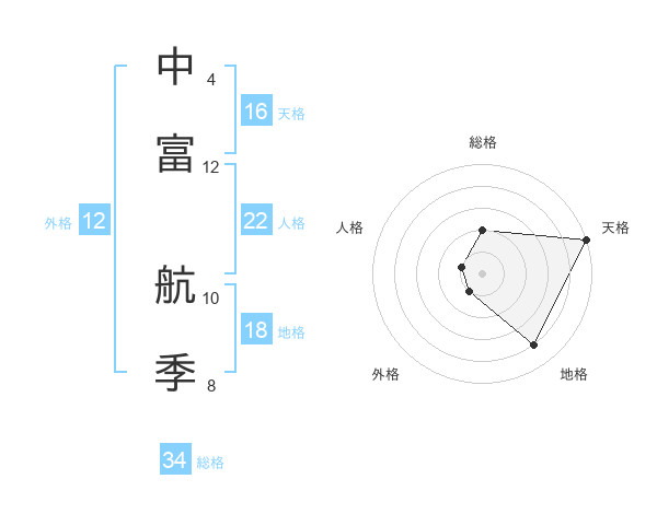 中富 航季さんの天格は16画の5点!