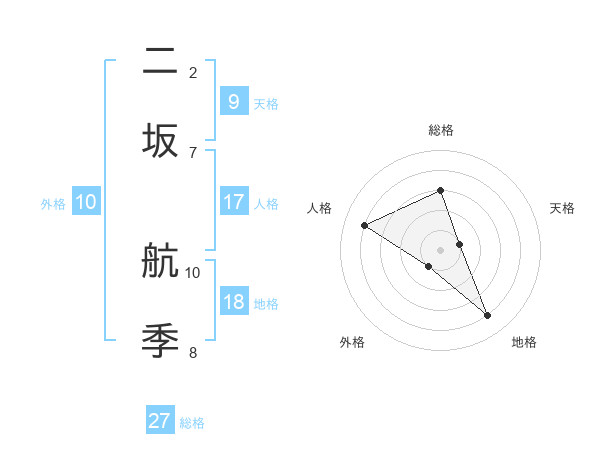 二坂 航季さんの総格は27画の3点!
