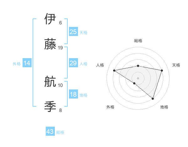 伊藤 航季さんの総格は43画の2点!