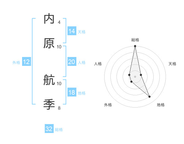 内原 航季さんの総格は32画の5点!