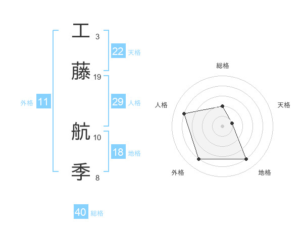 工藤 航季さんの人格は29画の4点!