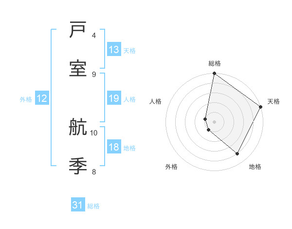 戸室 航季さんの総格は31画の5点!