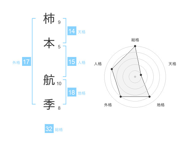 柿本 航季さんの総格は32画の5点!