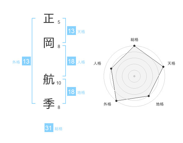 正岡 航季さんの外格は13画の5点!