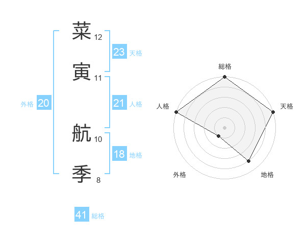 菜寅 航季さんの天格は23画の5点!