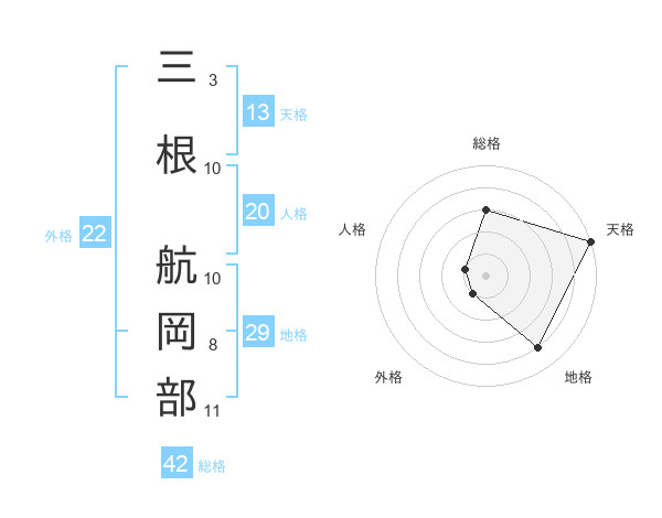 三根 航岡部さんを姓名の画数から五運を鑑定