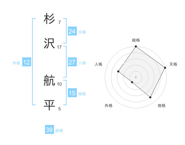 杉沢 航平さんの総格は39画の5点!