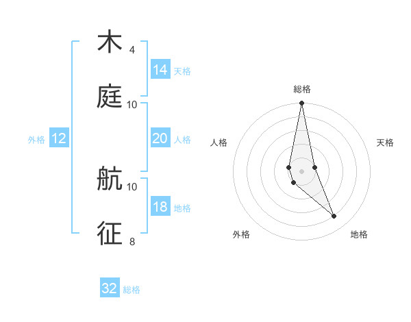 木庭 航征さんの総格は32画の5点!