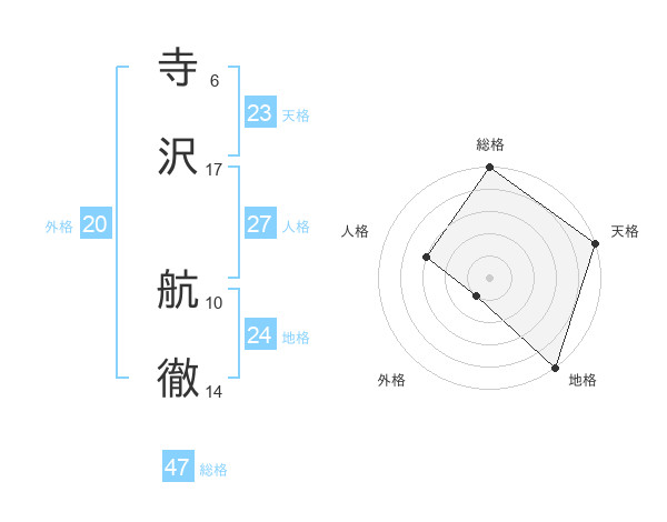 寺沢 航徹さんを姓名の画数から五運を鑑定