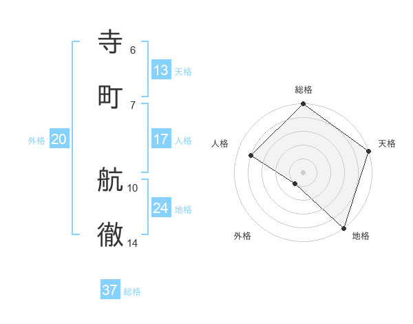 寺町 航徹さんを姓名の画数から五運を鑑定
