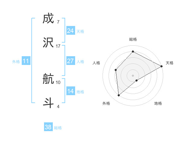 成沢 航斗さんの総格は38画の4点!
