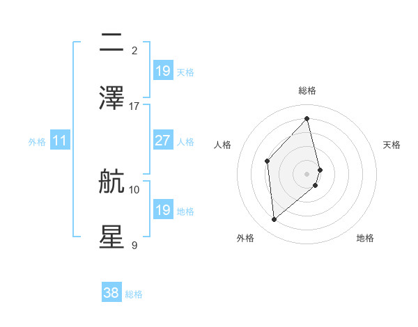 二澤 航星さんの総格は38画の4点!