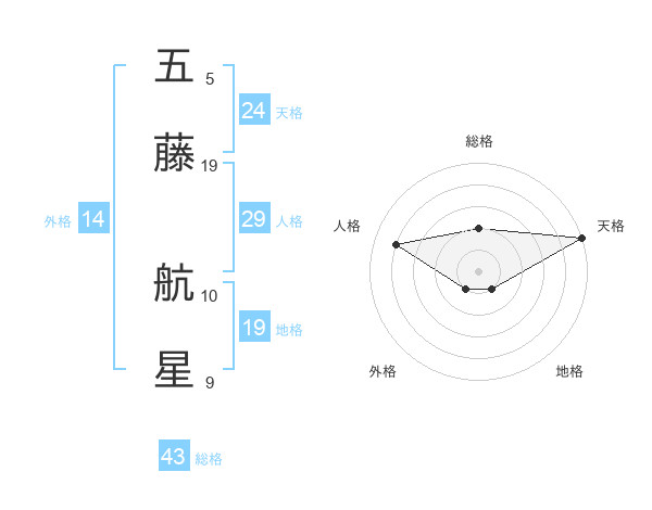 五藤 航星さんの天格は24画の5点!