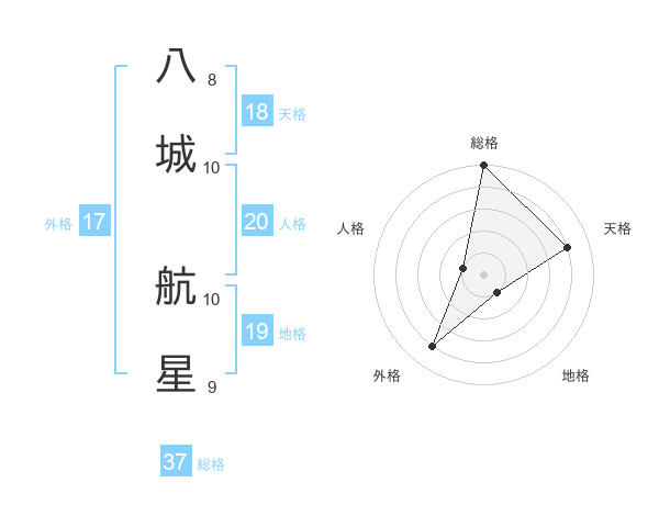 八城 航星さんの外格は17画の4点!