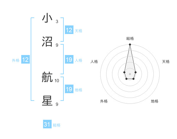 小沼 航星さんの総格は31画の5点!