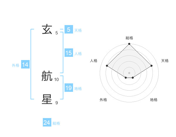 玄 航星さんの天格は5画の4点!
