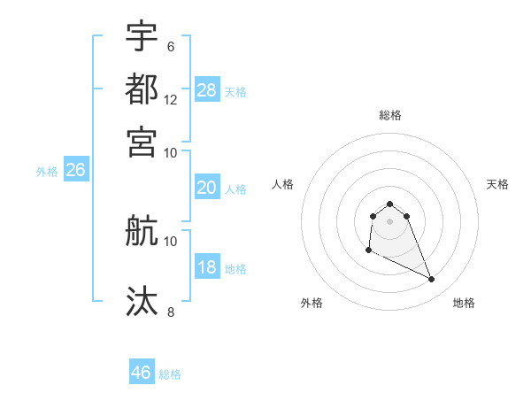 宇都宮 航汰さんを姓名の画数から五運を鑑定