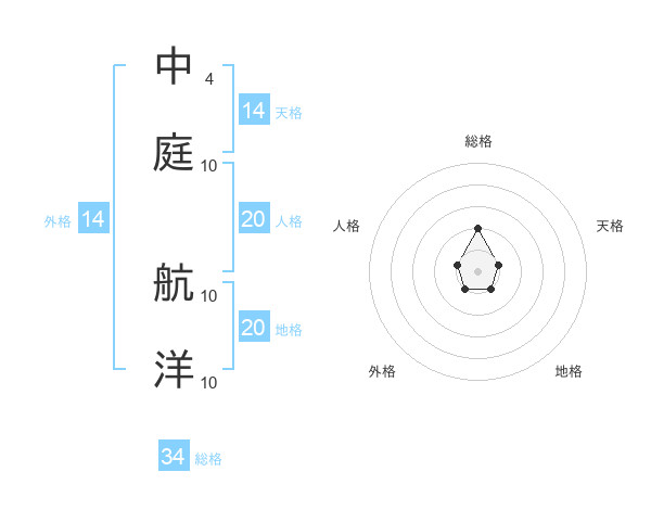 中庭 航洋さんを姓名の画数から五運を鑑定