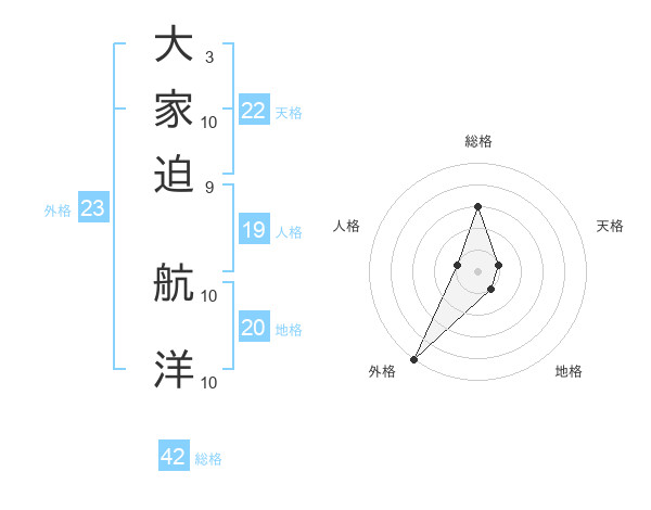 大家迫 航洋さんを姓名の画数から五運を鑑定