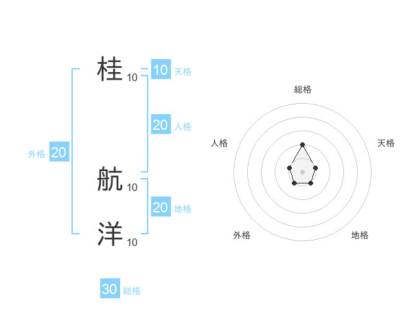 桂 航洋さんの総格は30画の2点!