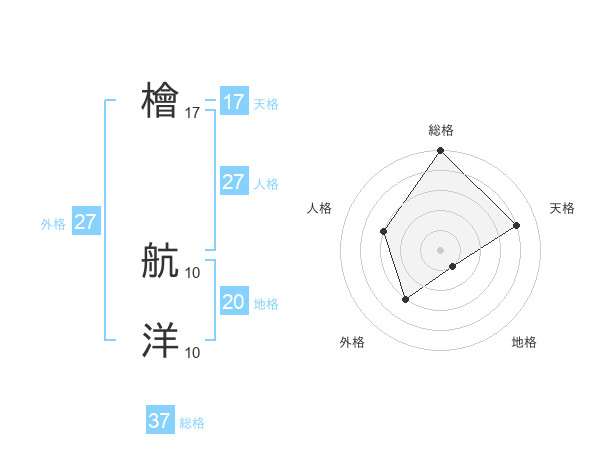 檜 航洋さんの総格は37画の5点!