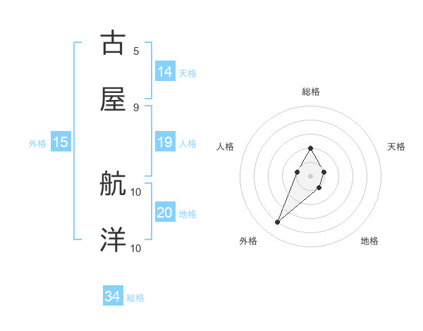 古屋 航洋さんを姓名の画数から五運を鑑定