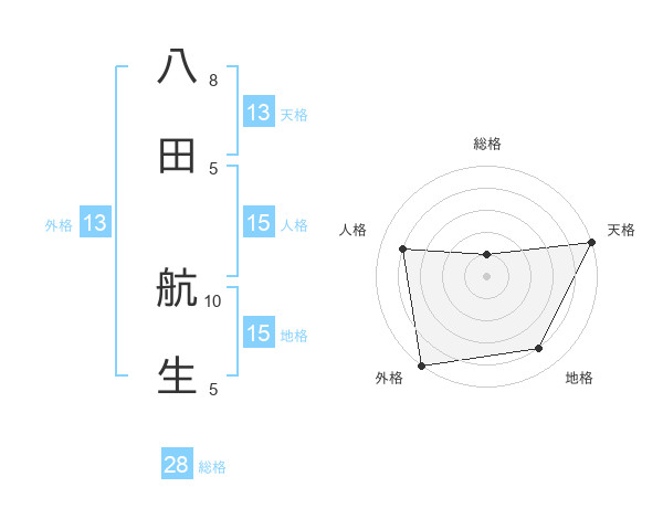 八田 航生さんの天格は13画の5点!