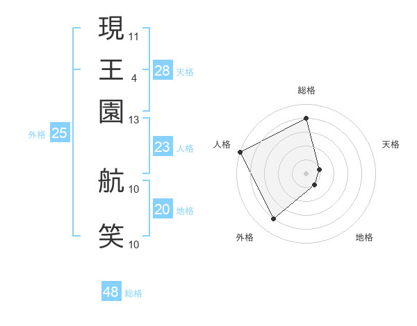 現王園 航笑さんを姓名の画数から五運を鑑定