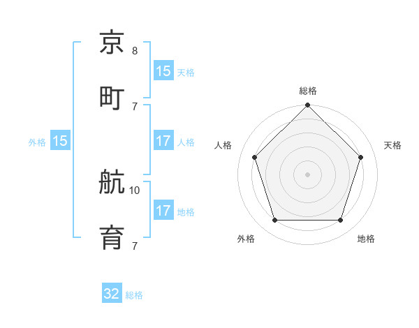 京町 航育さんの総格は32画の5点!