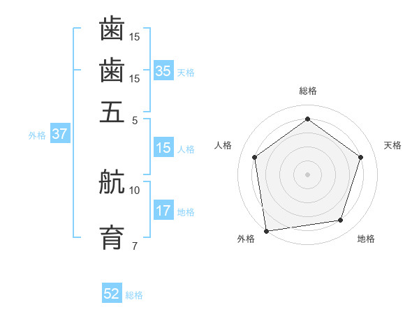 歯歯五 航育さんの外格は37画の5点!