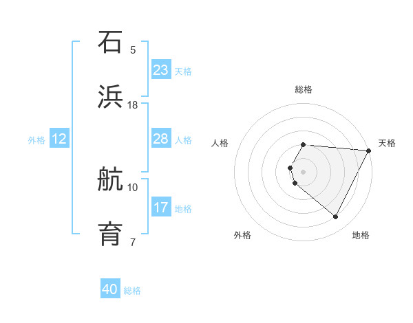 石浜 航育さんの総格は40画の2点!