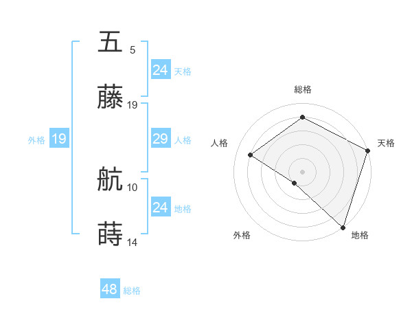 五藤 航蒔さんの総格は48画の4点!